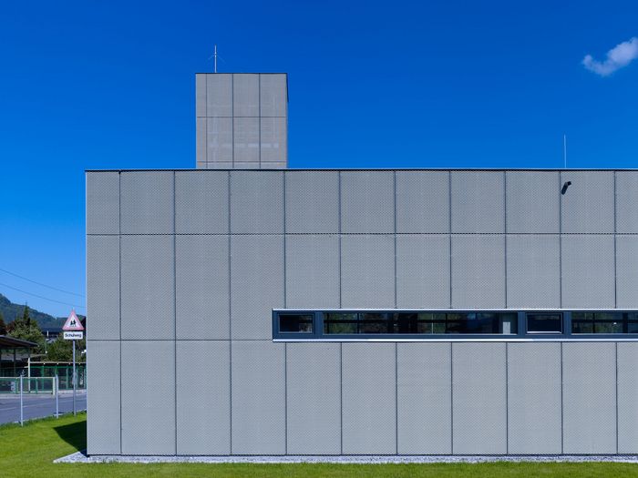 Erst auf den zweiten Blick wird deutlich, dass es sich bei dem mit RHEINZINK-prePATINA blaugrau verkleideten Gebäudeensemble um das Wohnhaus für eine Familie handelt.