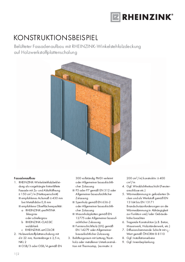 Ergebnistyp Allgemeines (21) Presse (2) Download (51) suchen vorherige45678nächste Belüfteter Fassadenaufbau mit Steckfalzpaneel Fassadensysteme pdf 48 KB Belüfteter Fassadenaufbau mit Stulppaneel Fassadensysteme pdf 65 KB Belüfteter Fassadenaufbau mit Trapezprofil Fassadensysteme pdf 50 KB Belüfteter Fassadenaufbau mit Wellprofil Fassadensysteme pdf 51 KB Workshop A, Falztechnik - Grundlagen Workshop A, Falztechnik - Grundlagen Hier werden Grundkenntnisse und die wichtigsten spenglertechnischen Detaillösungen vermittelt. Diese befähigen den Teilnehmer fachgerechte Belüfteter Fassadenaufbau mit Winkelstehfalzdeckung auf Brettholzschalung Fassadensysteme pdf 459 KB Belüfteter Fassadenaufbau mit Winkelstehfalzdeckung auf Holzwerkstoffplattenschalung Fassadensysteme pdf 511 KB Belüfteter Fassadenaufbau mit Winkelstehfalzdeckung auf Trapezblech Fassadensysteme pdf 66 KB RHEINZINK-Anformzink Materialdatenblatt pdf 301 KB Datenschutz … Bearbeitung Ihrer Anfrage und für den Fall von Anschlussfragen bei uns gespeichert. Diese Daten geben… vorherige45678nächste