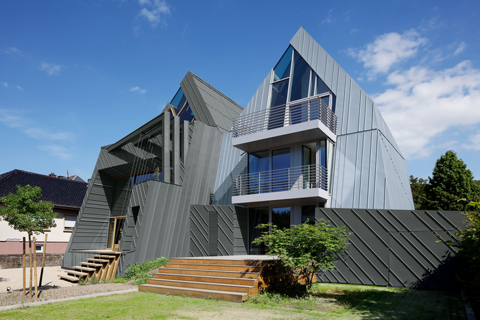 Das Wohnhaus in der luxemburgischen Gemeinde Gonderange ist nicht nur aufgrund der ausgeprägten Hanglage etwas Außergewöhnliches. Sowohl die Fassade, als auch das Dach des Hauses, sind aus…