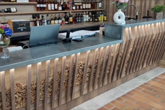 Die Architekten von KEOPS ARCHITECTURE (@keopsarchitectureroanne) entschieden sich gemeinsam mit den Inhabern des Weinkellers für eine außergewöhnliche Lösung einer Bar.