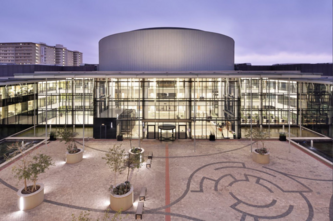 Inmitten farbprächtiger Jacaranda-Bäume und anderer zahlreicher Blumen, ragt der gewaltige Komplex des Verwaltungsgebäudes der Stadt Tshwane in Südafrika aus dem Boden.